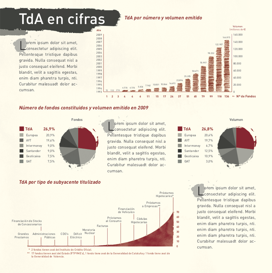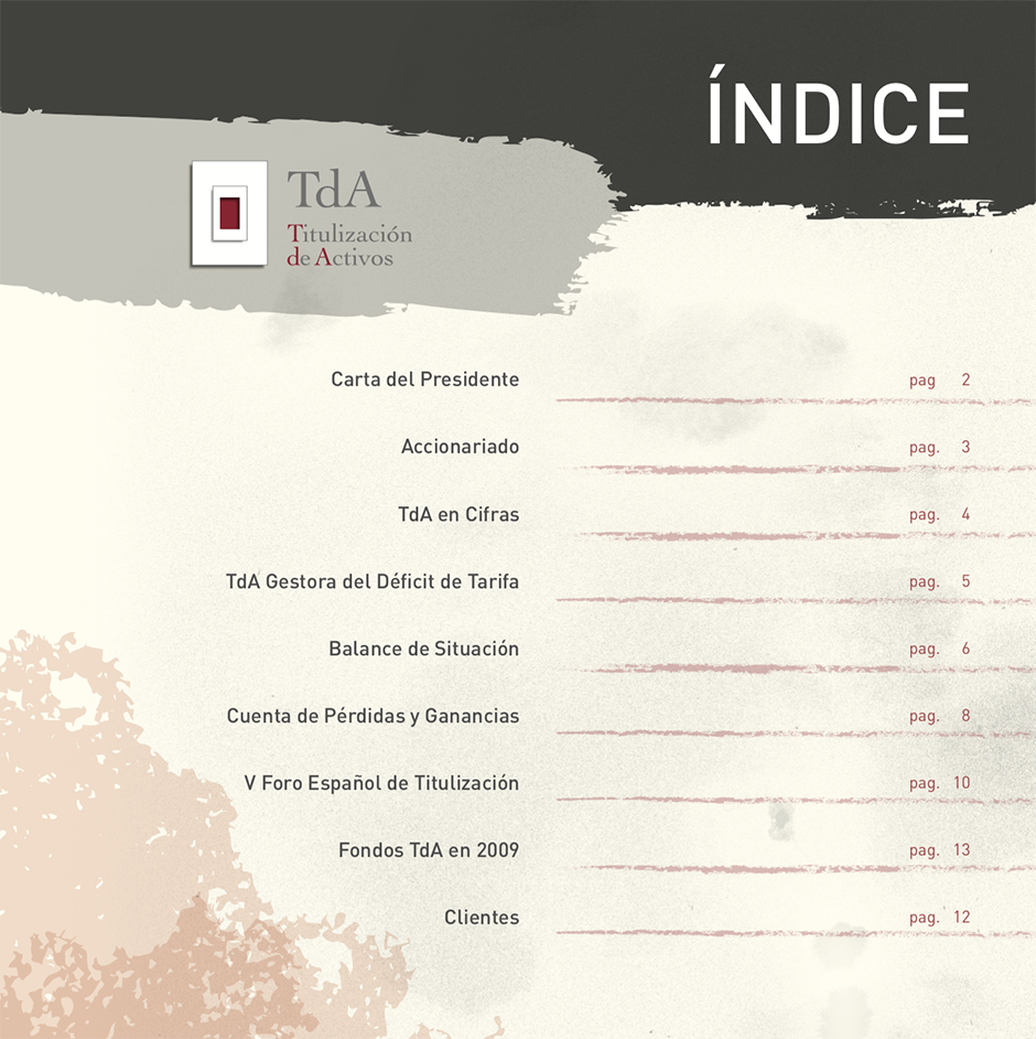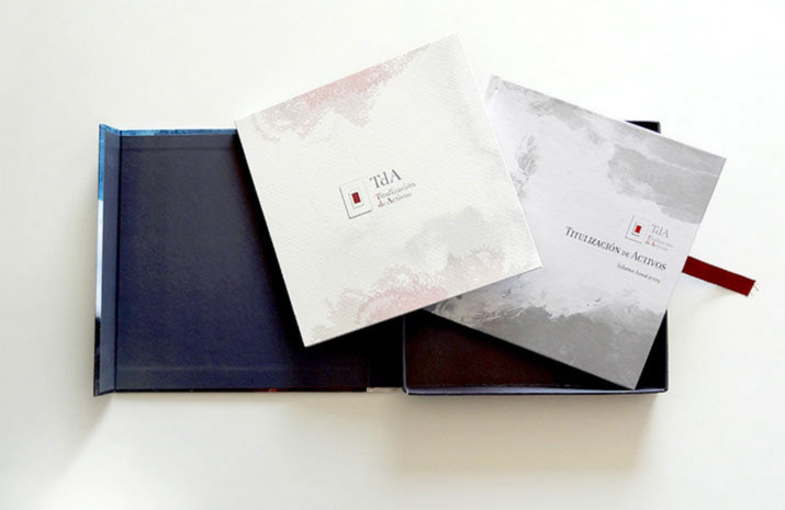 Informe Anual 2009 para la empresa Titulización de Activos. Diseño gráfico, maquetación, concepto del estuche y libretos interiores.