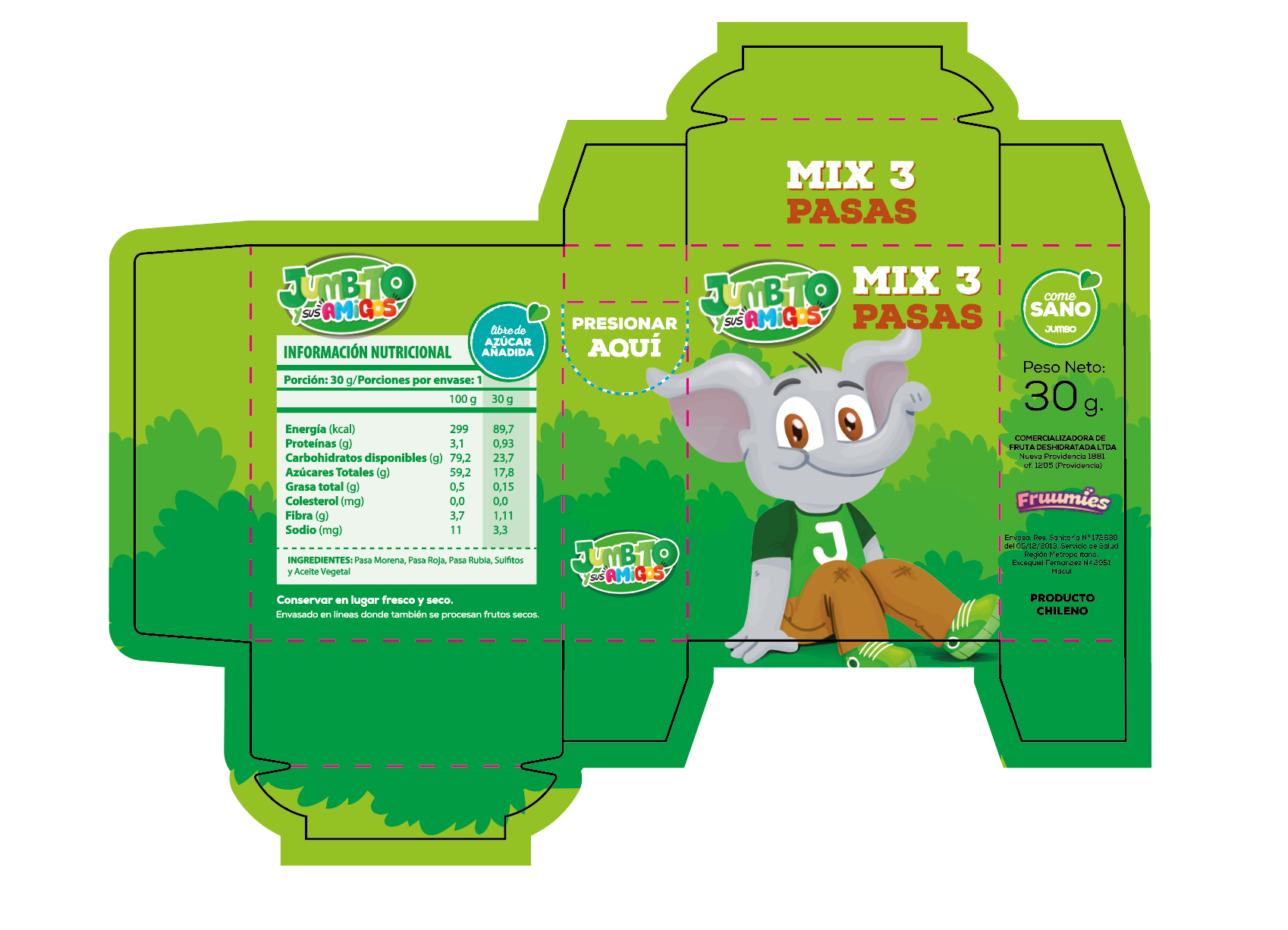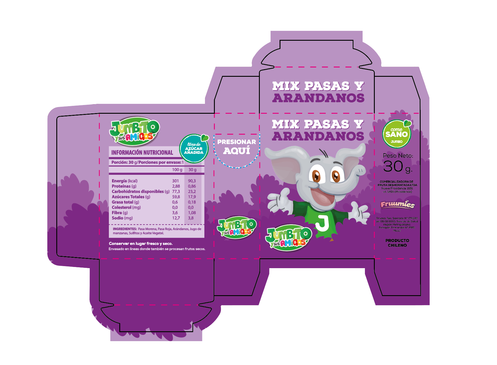 Imagen de Marca, Diseño de Packaging y Desarrollo de vídeo promocional para Fruumies LTDA.: La idea fue adquirida por Jumbo y el packaging fue adaptado posteriormente con la gráfica de la submarca "Jumbito y sus amigos".