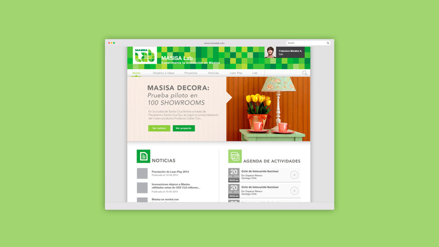 Diseño web de intranet para Masisa Lab.