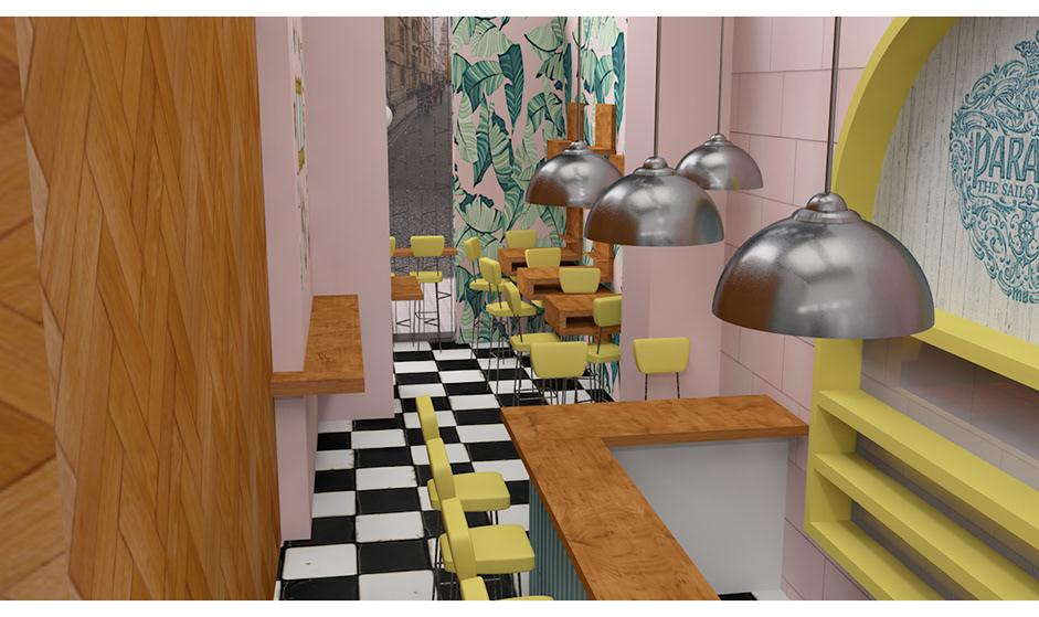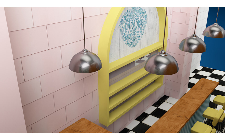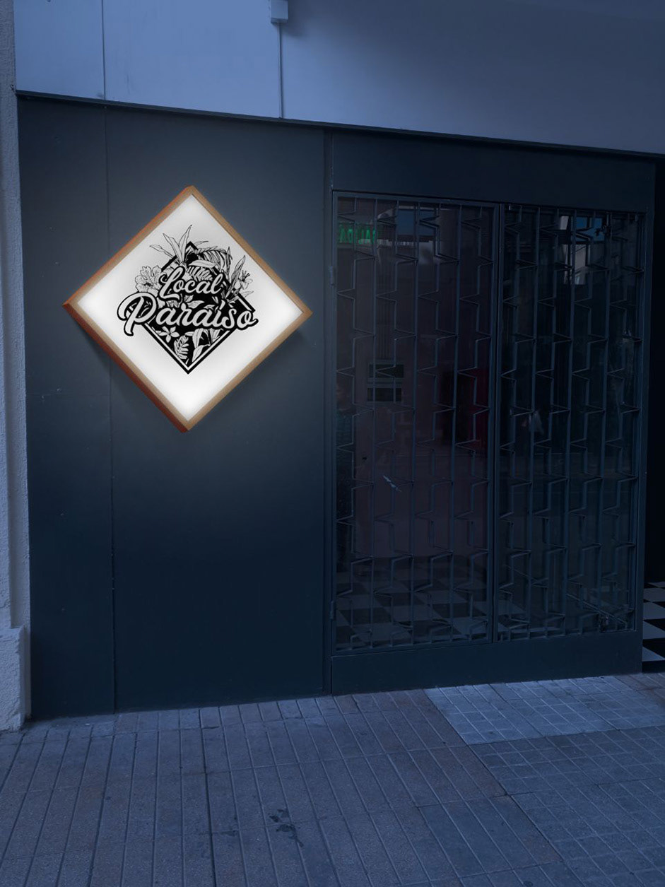 Diseño de imagen de Marca e identidad para la Sandwichería «Local Paraíso» Concept Art 3D, Imagen de Marca, Ilustración de murales de fachada, Cartelería y Packaging.